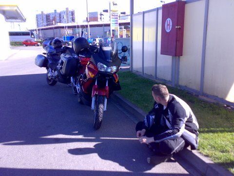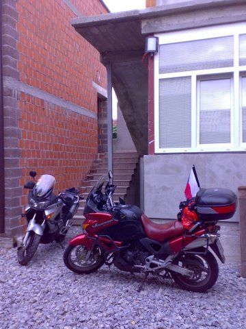 Kdo si již někdy oblékal dva dny po sobě mokré hadry, ví o čem to je. Nás ráno v Daruvaru opět budí řinčení parapetu pod přívaly deště. Rádi bychom zůstali a počkali, až se případně počasí umoudří, ale co naplat, Michal musí ve čtvrtek do "továrny" a tak nabalit, navléci vlhké motohadry, navrch nepromok, ať nás aspoň před větrem chrání a hybaj směr Maďarsko a Slovensko do Trnavy, kde má Michal přátele z dob, kdy pracoval v Anglii. To ještě netušíme, že právě tento den bude ten nekrušnější z celé cesty.