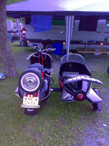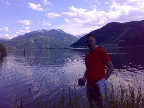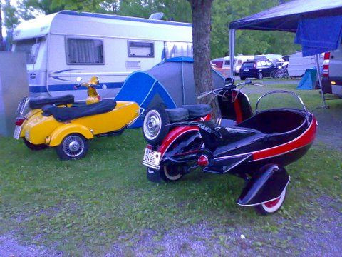 Ubytko malé ale luxus, jsme propocení a utahaní, tak se koupeme a hurá na břeh jezera do restaurace v kempu na pořádnou veču a pivko (několik). Koukáme z terasy po večeři v šortkách na zasněžený ledovec Kitzteinnhorn a je nám fajn. Při rozebírání dojmů z dnešní cesty nám večer utíká jako voda. Brouzdáme kempem a zjišťujeme, že jsme propásli celosvětový sraz majitelů skůtrů VESPA, a tak fotíme aspoň to, co ještě neodjelo.