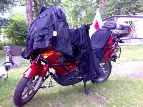 A jak jinak může být než pod mrakem, dokonce jsou tak nízko, že je můžeme holýma rukama rozhánět. Nic naplat, opět nabalit stroje, to co neuschlo na topení znovu vlhké na sebe, já i nepromok. Zkušeně odhaduji že brzy začne chcát. Loučíme se s přáteli, ale po 15 minutách leje jako z konve, a tak stojíme, Michal se musí obléct. Někde kolem Trenčína se mraky trhají, ale my již nepromoky raději necháváme a čím blíže k domovu, tím více taháme za plyn. Ještě že nikde neměřili.