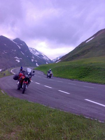 Jako by se nám počasí v Alpách chtělo představit v celé kráse, a tak nám ten podvečer seslalo ještě pořádnou dávku vody, kořeněnou krupobitím a průtrží, jež na krátkou chvíli ochromila život v kempu. Avšak pod střechou příjemné hospůdky paní majitelky s pivem navrch nám to nedělalo problém. Zapomněl jsem podotknout, že kemp byl v půli června plný holandských důchodců v obytných domech. První moment na nás koukali jako z jara, ale byli velmi příjemní a milí. Asi se báli, že jejich pohodu narušíme řevem našim a našich strojů, ale pak se s námi i fotili a loučili s úsměvy na tváři. Tam se určitě taky rád podívám znovu.