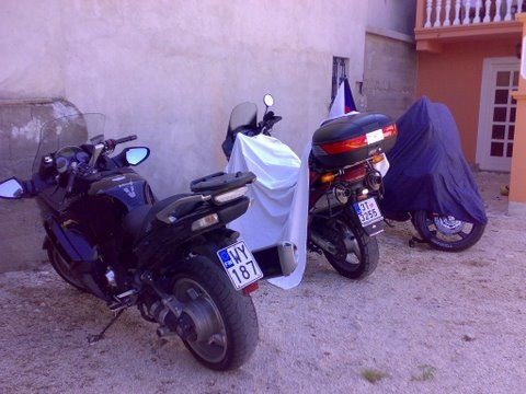 Biograd na Moru nás přivítal někdy v podvečer, řádně utahané, ale plné skvělých motorkářských zážitků. Další zážitek byl, jak jsme dohadovali ubytování s majiteli privátního bungalovu. Nezabírala má němčina, Michalova angličtina jen z části, a tak přišla ke slovu tužka a papír. Oplatilo se být neústupný - celé město bylo poloprázdné, turisté nikde, ale po nás chtěli palbu jako hrom. Nakonec jsme usmlouvali na polovinu s dovětkem majitelky, že jsme jak Italové a prý se hádáme o každé euro a že když máme takové motorky, musíme být bohatí! Hodila uraženě prdelí a odešla znechucená, že jsme ji zlomili na ceně, hihihi!!! Chtěla 35 € /os. a noc a po urputné hádce dostala 18,5 € na os.! Ve finále by jinak totiž neměla nic, odešli bychom...