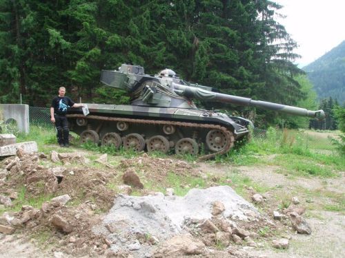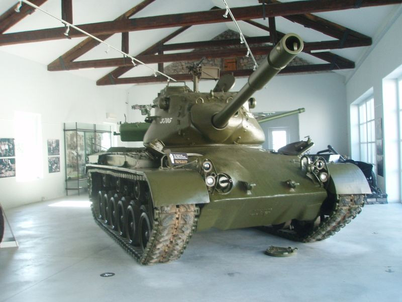 Mají zde hlavně tanky, podle všeho tu totiž bývala nějaká vojenská tanková škola. Vystavují zde i různé tankové motory a převodovky. Kdekdo zná tank z venku, ale nás zajímá i to, co dokáže takovou obludu rozhýbat. Navíc zde na dvoře mají i malou ponorku, kam můžete vlézt, ale za neskromný poplatek. Nakonec se pouze zadarmo fotíme na její věži. Petr se ještě fotí ve strážní budce před vchodem a za chvilku už vyrážíme splnit Jarce její přání.