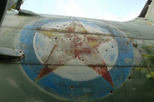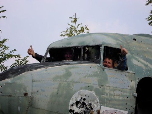 Asi kilometr od hlavního letiště jsou ještě zarostlé objekty týlu. Ubytovny, kanceláře, autodílny, ale třeba i hřiště a opičí dráha. Některé objekty asi využívají lidé z blízké vesnice, ale většina jen pustne. Po prohlídce tří opuštěných letounů, které asi dříve zdobily vjezd do areálu, se vydáváme zpět. Jedním z těch letounů je stará Dakota, a tak se alespoň Petr fotí v kabině za jejím řízením.