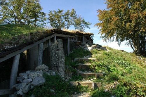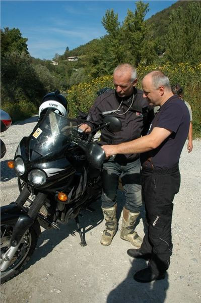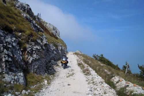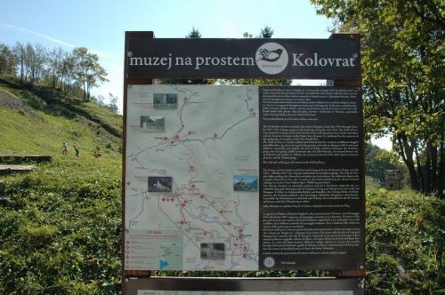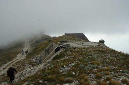 Ráno se s námi loučí Sete a Medvěd, kteří mají doma neodkladné povinnosti. My ostatní pokračujeme v naší válečné cestě pohraniční silnicí mezi Slovinskem a Itálií. Zde jsou totiž kromě krásných panoramat slovinských Alp k vidění i pevnůstky z 1. světové války. Je to především opevnění Kolovrat, kde jsou dochovány okopy a opevněné podzemní kryty. Cestou je i šotolinový úsek, na jehož konci potkáváme partu Harleyáků, kteří nás zastavují aby zjistili, jak dlouhý ten úsek je. Moc se jim do toho nechce.