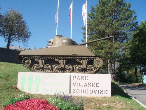 Ve městě Pivka navštěvujeme neplánovaně vojenské muzeum, o němž jsme ani dopředu nevěděli. Přehlédnout tank stojící u silnice jako poutač však dost dobře nešlo. Na dnešek jsme sice Jarce slíbili koupání v moři, ale nedá se nic dělat - rozkaz zněl jasně! Navštívit vše co se týká válečné tématiky! Jarka nám venku alespoň pohlídá věci a my s elánem nám vlastním prolézáme vojenskou techniku bývalé Jugoslávie.
