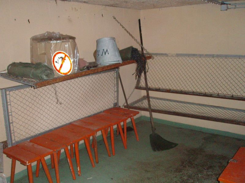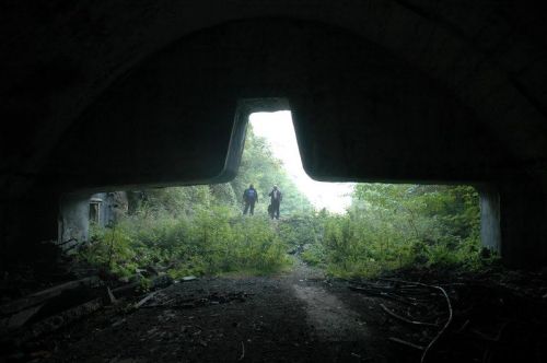 Uvnitř zjišťujeme, že naše vybavení rozhodně není schopno zde něco fotit nebo filmovat. Tma je neprostupná a ve světle našich baterek je vidět jen nejbližší okolí a zvířený prach. V jedné chodbě nalézám dvě čelní skla, pravděpodobně z MIGu. Okamžitě mě napadá, jak je naložit na motorku, ale nakonec tento nápad opouštím. Čím hlouběji jsme v chodbách, tím více se cítíme nepříjemně. Navíc i tady máme obavu z min a neurčitého varování na internetu, že je ve vzduchu v chodbách rozptýlen jakýsi zdraví škodlivý materiál. Do chodby číslo jedna se vstup nedoporučuje vůbec. Nechceme riskovat, a tak podzemí opouštíme.