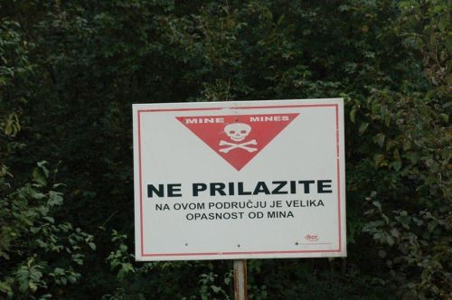 Cesta nás vede na asi všem známá Plitvická jezera, která však dnes nenavštívíme. Do cíle zbývá asi 30 km, když nás zastavuje na jinak poloprázdné silnici dopravní zácpa. Stojí zde i několik autobusů. Lidé jsou venku a v klidu pokuřují, to už tady asi čekají dlouho. My se samozřejmě prodíráme až dopředu, kde nás zastavuje zátaras, který hlídají nějací civilisté. Na dotaz, co se stalo, nám odpovídají jen: „Miny!“ Nakonec nám vysvětlují, že asi o dva kilometry dál se provádí odminování pozemků vedle silnice. A opravdu – po asi dvaceti minutách zátaras odklízí a můžeme jet dál. Minové pole pak spatřujeme ohraničené vpravo vedle silnice. Následky válek z devadesátých let ostatně dnes vidíme víc a víc. Vypálené domy a kostely tu jsou stále smutnou realitou.