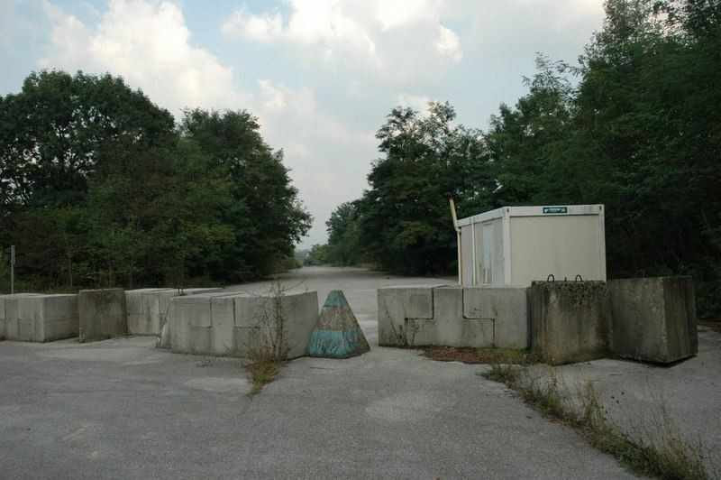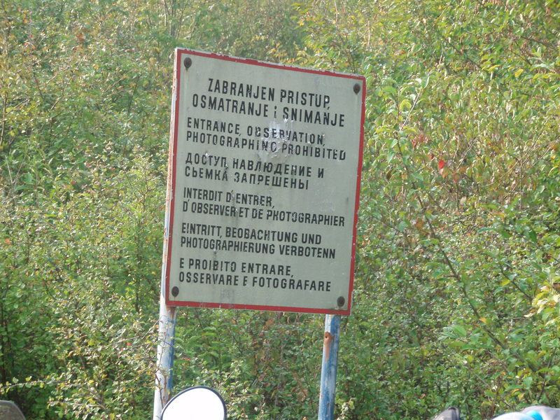 Sedáme na motorky a vydáváme se objet letiště po rozjezdových drahách. I ty jsou ale místy poškozeny náložemi a zbytek dokončuje příroda. Dvacet let zanedbané údržby dělá své. Cestu nám navíc přehrazuje řada betonových bloků, vyznačující hranice Bosny. Je zde i cedule, která to potvrzuje. Výstup z chodby číslo čtyři je tedy v zahraničí...