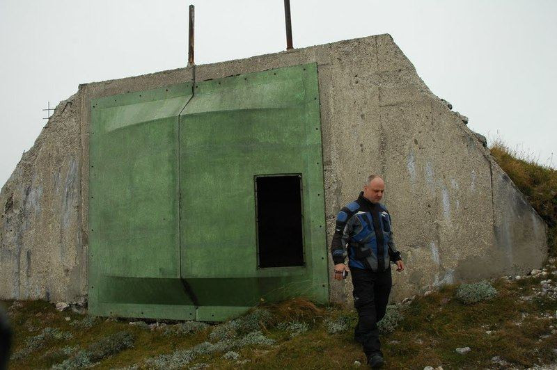 Marvy neomylně s pomocí GPS nalézá odbočku na cestu, vedoucí na radarovou základnu. Čeká nás dvanáct kilometrů pěkné šotoliny s převýšením tisíc metrů. Počasí dole bylo pěkné, ale nahoře dost fouká a chuchvalce mraků pod námi nám brání se doširoka rozhlédnout. Chvílemi mezi mraky zahlédneme rozjezdové dráhy letiště dole pod horou. Většina techniky i tady byla ukryta pod zemí, ale kvůli minám se nedoporučuje návštěva těchto míst. Radar fungoval ještě na přelomu tisíciletí a využívala ho vojska mezinárodních sil. Svého času byl prý nejvýkonnější ve Středomoří a nepřátelům Jugoslávie byl prý trnem v oku.