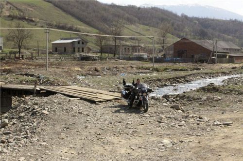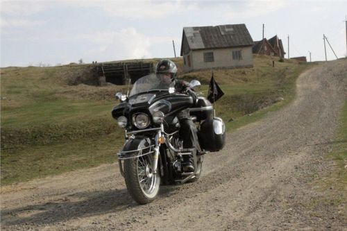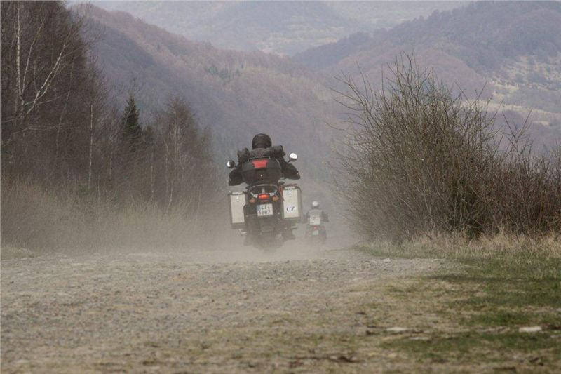 Bohužel, čas je neúprosný, a tak musíme pomalu vzít kurz zpět. Cestou zkoušíme ještě trochu Off, ale při jednom z nich se mi láme zadní plotna a top case padá. Raději přestávám blbnout a mám zas co spravovat. Padající kufr poškodil i zadní světlo. No, to už ale k našemu podnikání patří... Paulínovo VTX není schopno tuhle trasu zvládnout, a tak se od nás odpojuje a přejíždí přes hlavní tahy Chust a Mukačevo. Bůh tě ochraňuj před lapky, neboť nablýskaný čopr a samotný jezdec na něm, to je magnet na lumpy. A co víc, Bůh tě ochraňuj před policejními ochránci zákona, neboť ti jsou ze všeho nejhorší loupežníci :-).