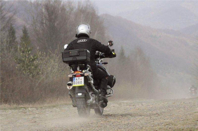 Užíváme si terenních vložek a Paulíno na VTX stíhá. Je skvělý řidič, jen lituje, že nemůže jet ve stupačkách jako my. S předkopy to moc nejde a i když se sebevíce snaží, vypadá spíše jak lyžař na vleku, než jako zdatný endurista-offroudista.