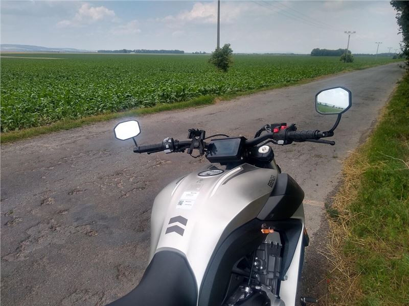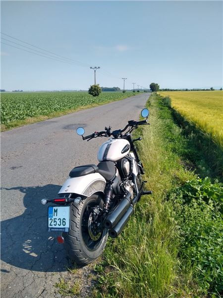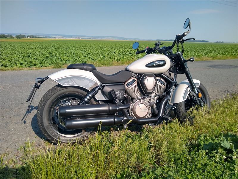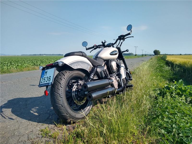 Chinchilla 500 působí dospěle. Posez nízký, sedlo pohodlné, zvuk dvouválce příjemně dunivý, aniž by byl rušivý. Řemenový převod pracuje tiše a plynule, motor jde odspodu krásně za plynem. Není to žádný trhač asfaltu, ale na běžné ježdění a víkendové výlety má výkonu dostatek a působí dojmem většího objemu. Převodovka přesná, brzdy slušné, podvozek stabilní – žádné čínské „laciné chvění“, jak jsme u některých značek zvyklí. Příjemně překvapila kvalita zpracování a detailů, s výjimkou bočních samolepek.