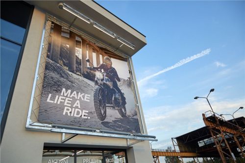 Kvalitní černé bavlněné triko s originálním barevným potiskem MotoRoute