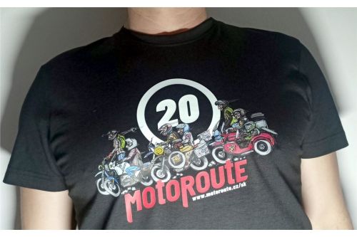 Kvalitní černé bavlněné triko s originálním barevným potiskem MotoRoute
