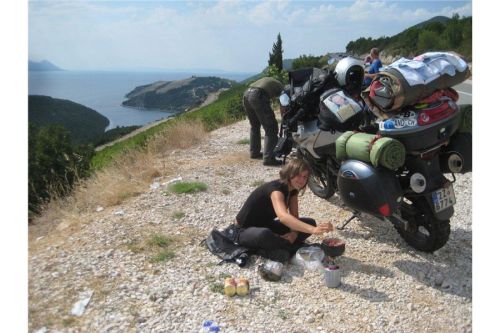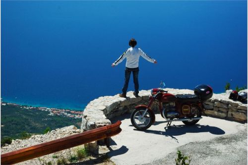 Kvalitní černé bavlněné triko s originálním barevným potiskem MotoRoute